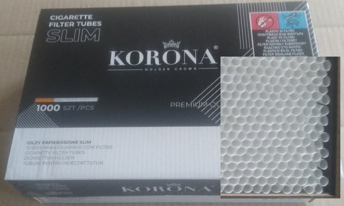 Размер самой сигаретной гильзы Korona Slim 84 мм * 6,5 мм.